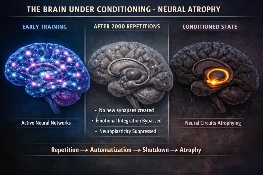 That is conditioning â€” a system designed to bypass cognition, bypass emotion, bypass meaning, and replace all of it with reflexive compliance.