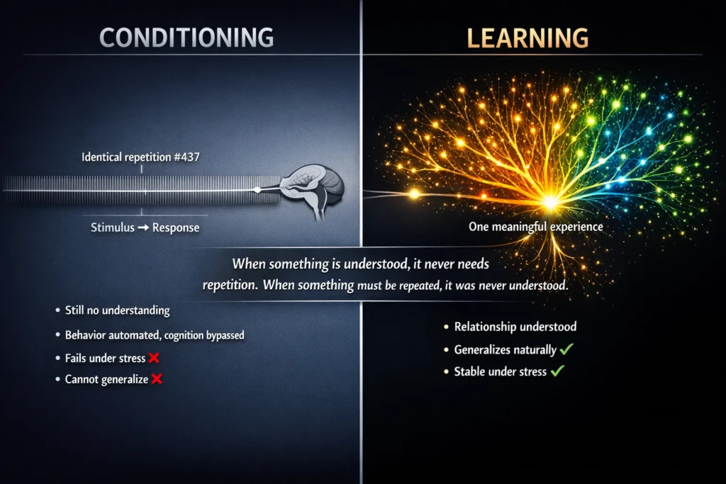 Why Repetition Produces Obedience but Destroys the Capacity to Learn